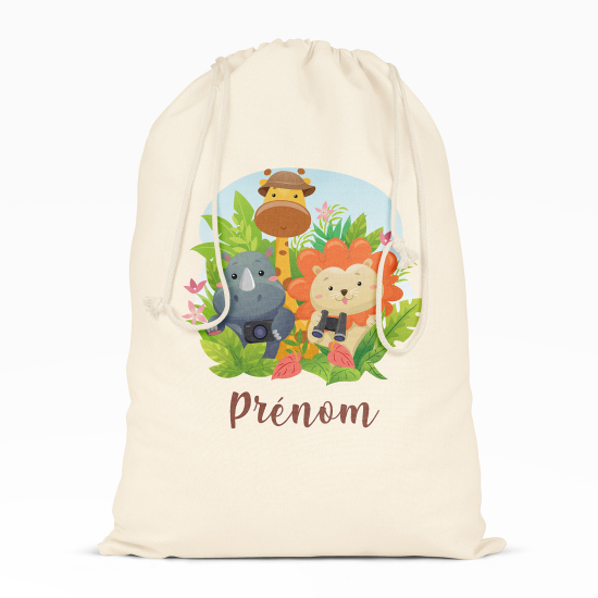 Ein bezaubernder Baumwoll-Canvas-Rucksack mit Zugband, um die kleinen Sachen Ihres Kindes zu transportieren.