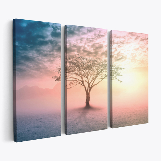 Dreiteilige Leinwanddrucke in High Definition, montiert auf einem 2 cm dicken Tannenholzrahmen mit Retentionskeilen.