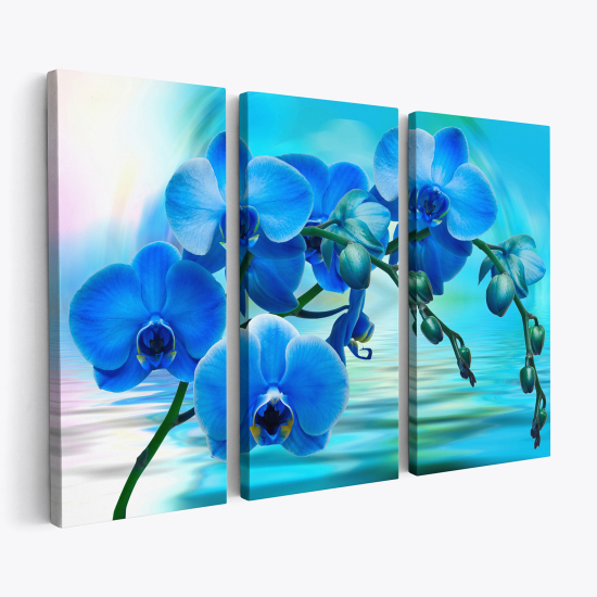 Leinwandbild 3-teilig - Blaue Orchideen