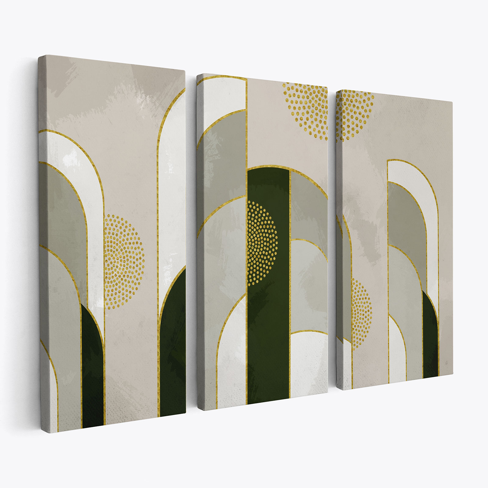 Unsere Triptychon-Leinwände sind sorgfältig gestaltet, um eine außergewöhnliche visuelle Harmonie in jedem Raum zu schaffen. Jedes Set besteht aus drei passenden Paneelen, die zusammengefügt werden, um ein zusammenhängendes Kunstwerk zu bilden. Ob Sie abstrakte Landschaften, geometrische Kompositionen oder zeitgenössische Muster bevorzugen, unsere Kollektion bietet eine Vielzahl von Stilen, um Ihrem Geschmack gerecht zu werden.