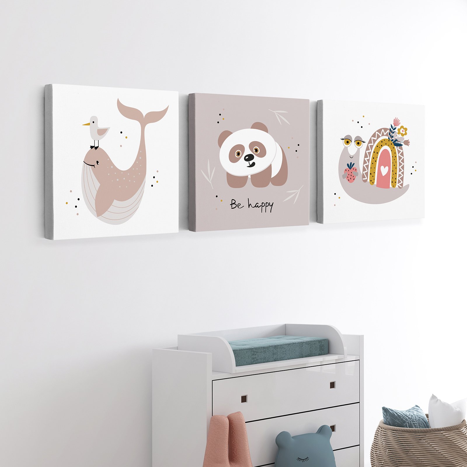 Leinwandbild 3-teilig für Kinderzimmer - Tiere