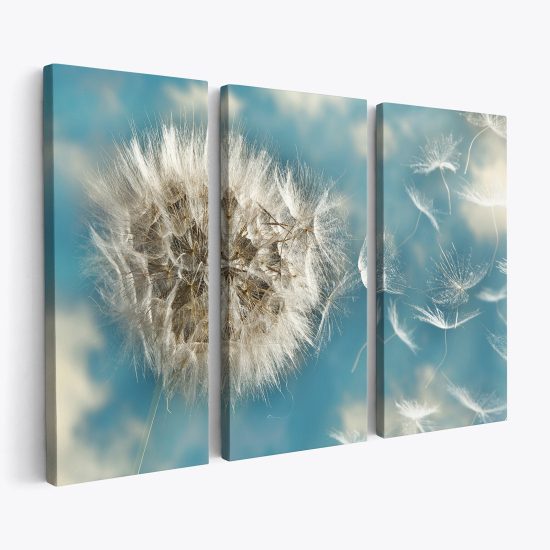 Dreiteilige Leinwanddrucke in High Definition, montiert auf einem 2 cm dicken Tannenholzrahmen mit Retentionskeilen.