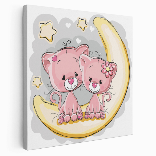 Leinwandbild für Kinderzimmer - Katzen auf dem Mond