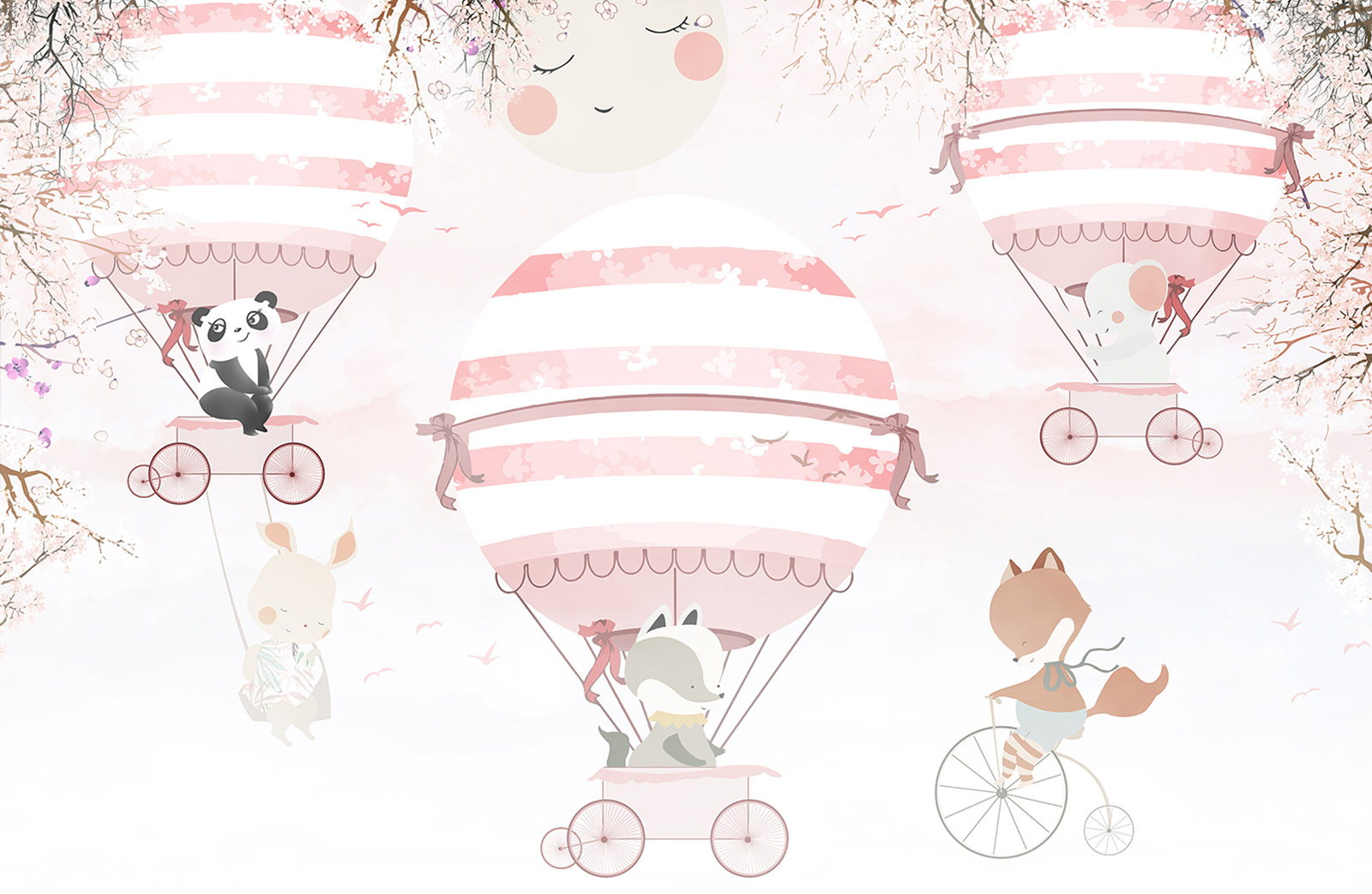 Panoramatapete Kinder - Heißluftballon-Tiere