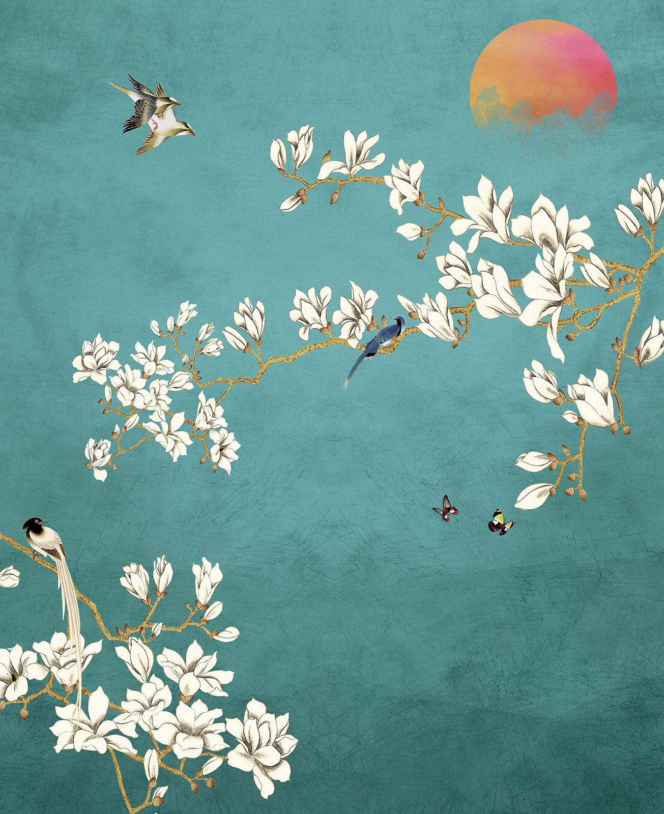 Panoramatapete - Zweige Vögel
