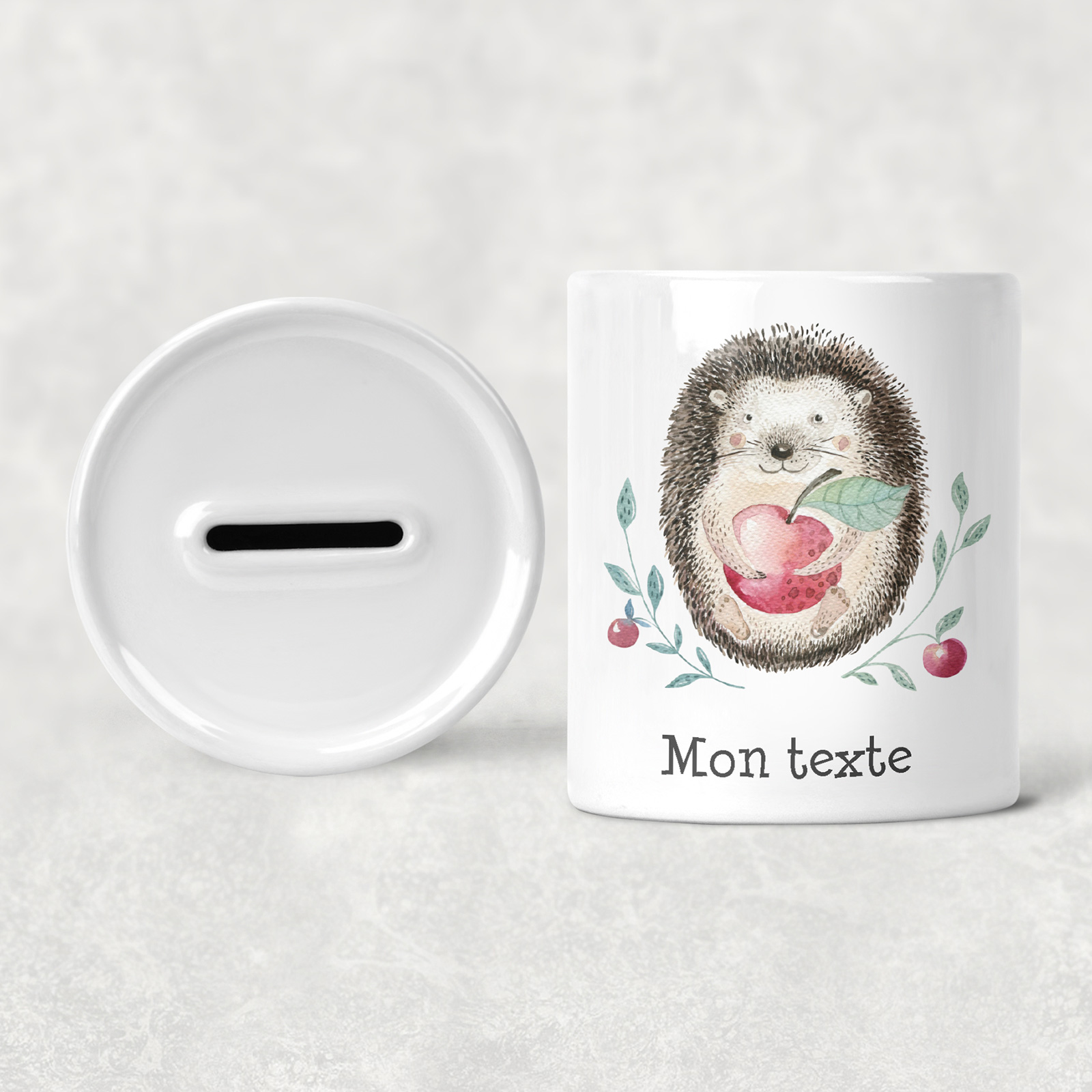 Personalisierte Sparschwein für Kinder - Apfel-Igel