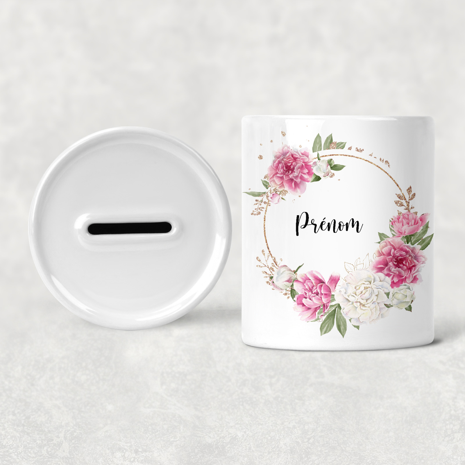www.lumalea.de > Kinder > Sparschweine > Anpassbarer Vorname > Personalisierte Sparschwein für Kinder - Blumen