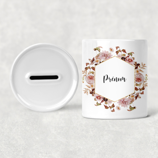 Personalisierte Sparschwein für Kinder - Blumen