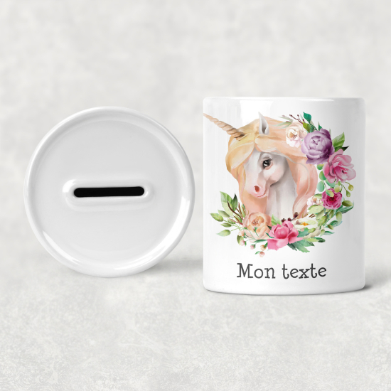 Personalisierte Sparschwein für Kinder - Einhorn Blumen