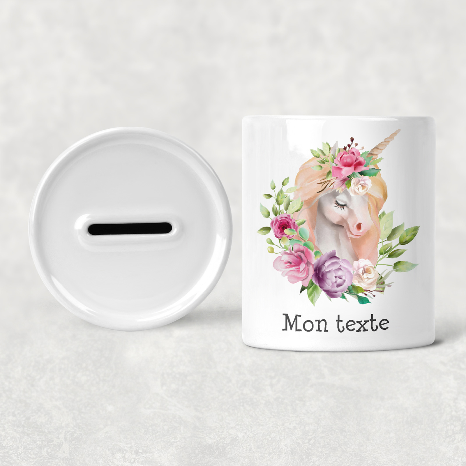 Personalisierte Sparschwein für Kinder - Einhorn Blumen