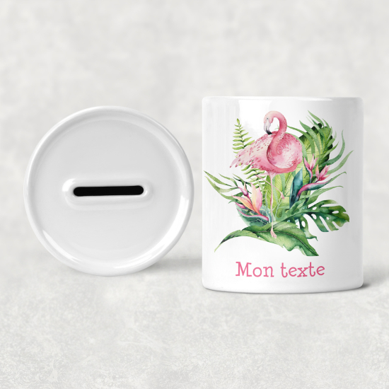 Personalisierte Sparschwein für Kinder - Rosa Flamingos