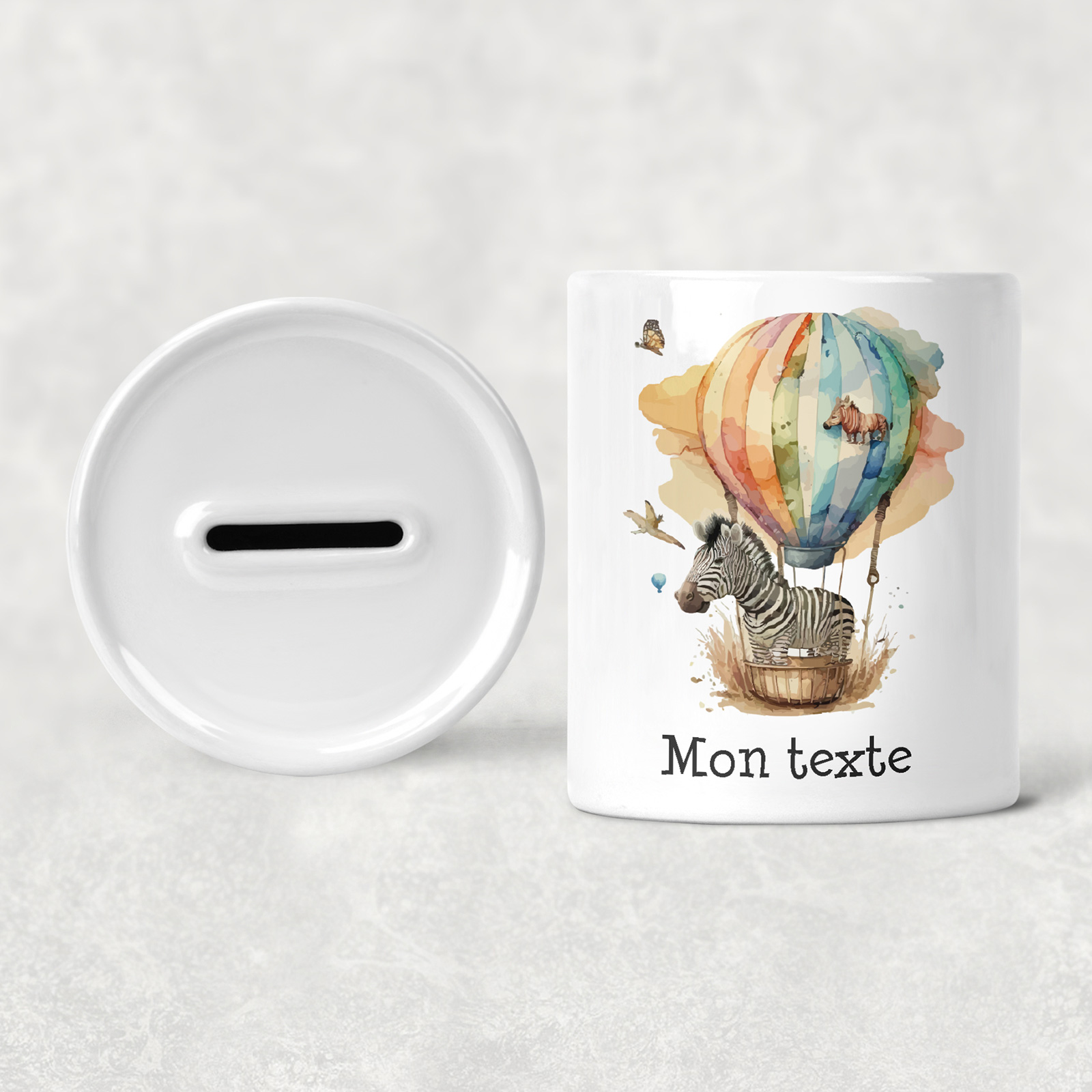 Personalisierte Sparschwein für Kinder - Zebra-Heißluftballon
