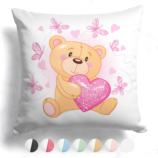 Personalisiertes Kissen mit farbiger Rückseite - Bärenherz