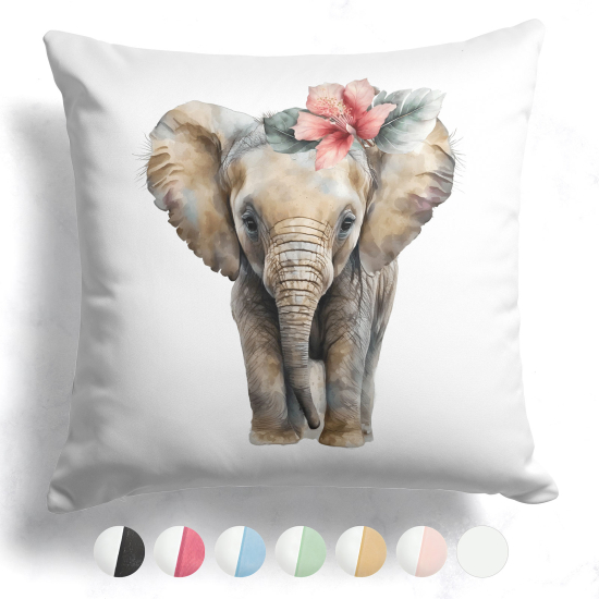 Personalisiertes Kissen mit farbiger Rückseite - Blumen-Elefant