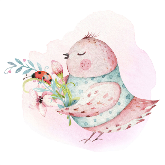 Poster Kinder - Vogel Blumen