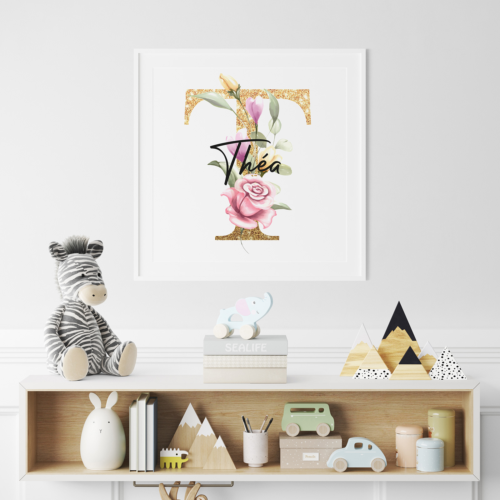Einfache Personalisierung: Das Personalisieren eines Posters mit alphabetischem Monogramm und Vornamen ist einfach. Wählen Sie den Anfangsbuchstaben des gewünschten Vornamens, die Farbe und geben Sie den Vornamen ein – den Rest übernehmen wir. Sie erhalten ein einzigartiges Kunstwerk, das zu einer eleganten Aussage Ihres Stils wird.