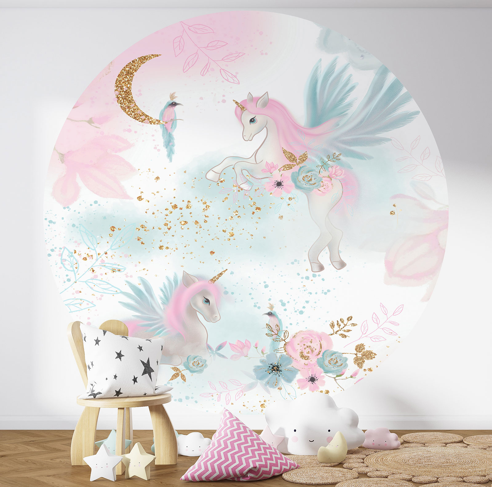 Runde Fototapete für Kinderzimmer - Glitzer-Einhörner