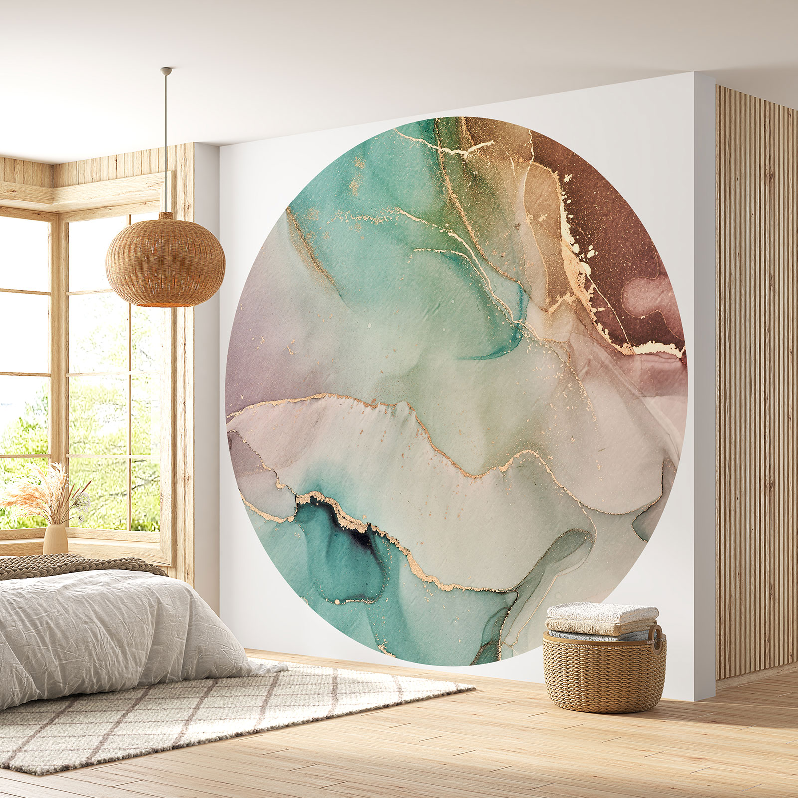 Das war's! Ihre runde Tapete ist angebracht und sorgt für einen beeindruckenden Effekt an Ihrer Wand, perfekt glatt und gut haftend!