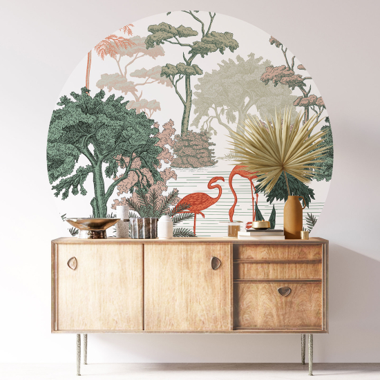 www.lumalea.de > Tapeten > Runde Tapeten > Runde Dekorationen > Runde Fototapete - Rosa Flamingos