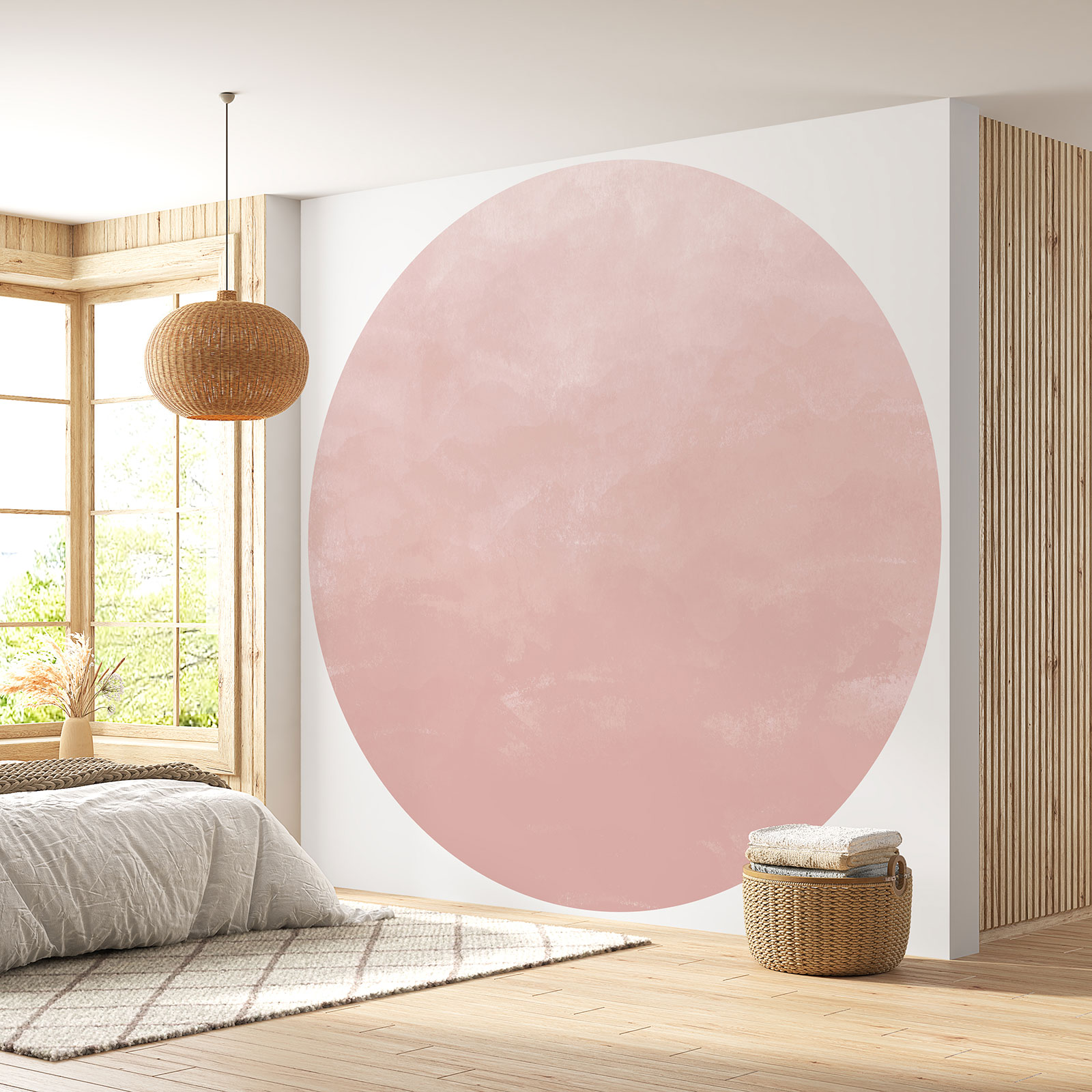 Das war's! Ihre runde Tapete ist angebracht und sorgt für einen beeindruckenden Effekt an Ihrer Wand, perfekt glatt und gut haftend!