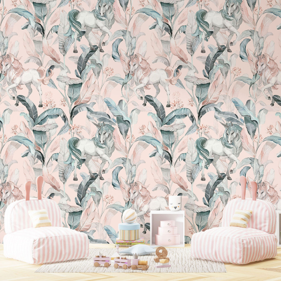 Tapete mit großem Muster für Kinderzimmer - Einhörner