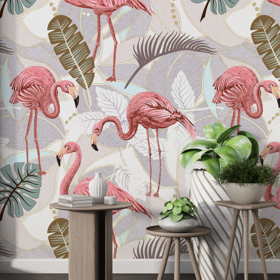 www.lumalea.de > Tapeten > Tapeten mit sich wiederholenden Bahnen > Motive in Größe XL > Tapete mit großem Muster - Rosa Flamingos
