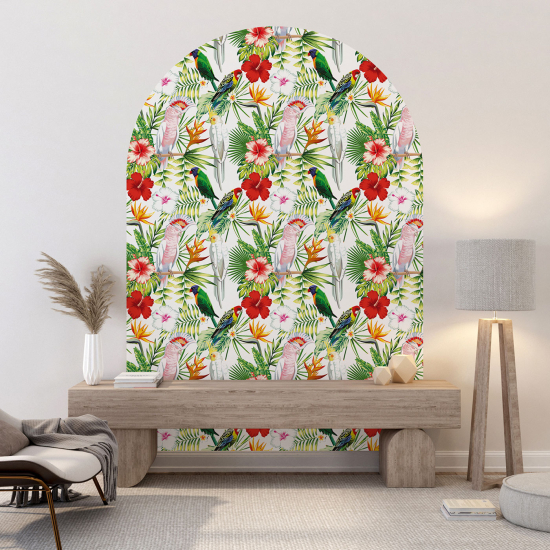 Wandtattoo Rundbogen - Blumen Vögel