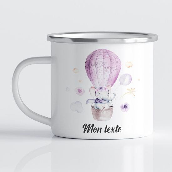 Emaille tasse personalisiert für Kinder - Elefant Heißluftballon