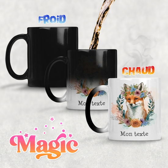 Zaubertasse personalisiert - Fuchs Blumen