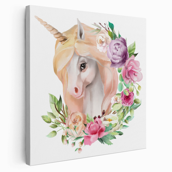 Leinwandbild für Kinderzimmer - Einhorn Blumen