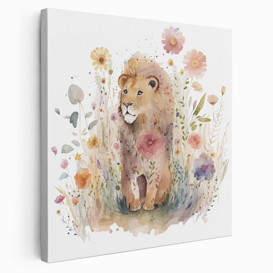 Leinwandbild für Kinderzimmer - Löwenjunges Blumen