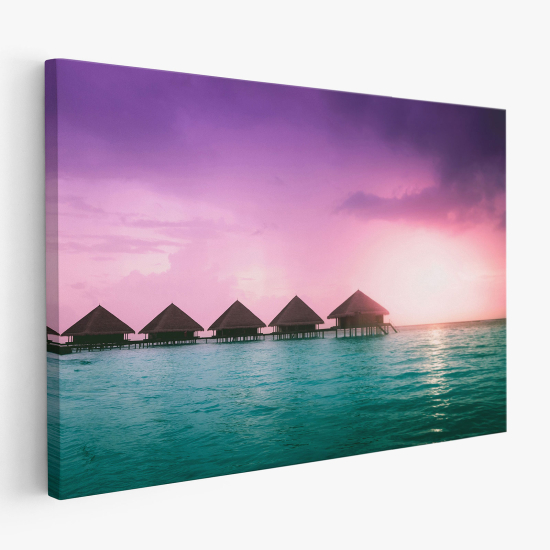 Leinwandbild - Paradiesische schwimmende Bungalows