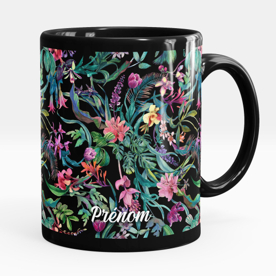 Personalisierte Tasse - Schwarze - Vögel Blumen