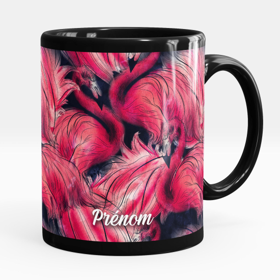Personalisierte Tasse - Schwarze - Rosa Flamingos
