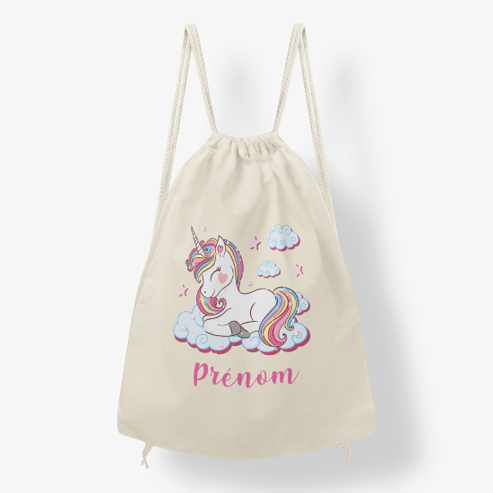 Personalisiertes Kissen mit farbiger Rückseite - Regenbogen-Einhorn